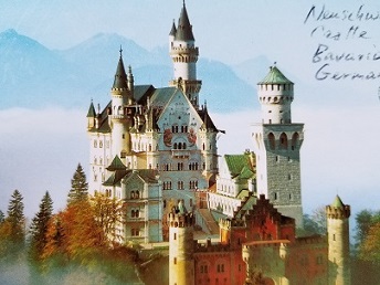下图是新天鹅堡的全景,图片是由我所购买的明信片扫描而成,我很难拍出这么好的照片。