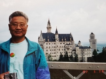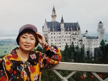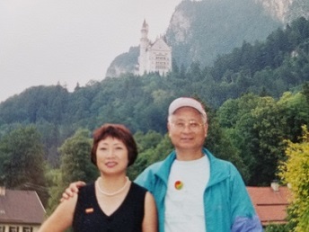 2002年6月29日上午11点,旅游大巴停在指定的停车场上,我们步行上山,开始了为时半天的新天鹅堡观光游览。下图是我与我妻在通往城堡的小路上所拍摄的照片。