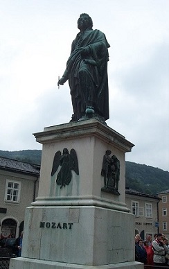 然后我们到萨尔茨堡的教堂广场去观光。教堂广场上有莫扎特的立式雕像(见下图)。