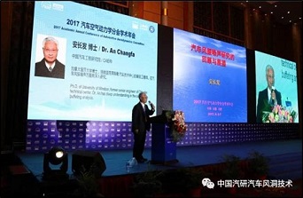 2017年9月7日,是会议的第二天。上午9点10分,轮到我讲演,题目是“汽车风振噪声研究的回顾与展望”。我说我还有一篇英文论文,原来投稿国际会议,如今改投本次会议。我儿安扬带来的50份彩色打印单行本,现场散发,一抢而光,下图是我在大会上做讲演。