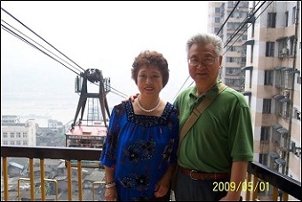 我们乘坐嘉陵江缆车过江,下图是我与我妻在缆车入口处的合影。