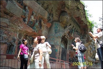 我早就听说,重庆的“大足石刻”蜚声中外。以前一直没有机会去参观,如今人在重庆,无论如何也要去一次,于是我决定参加“大足石刻”的随团游。我到重庆市渝中区的凯瑞酒店,找到了“长江旅行社”,报名参加了“大足石刻一日游”,票价每人260元。