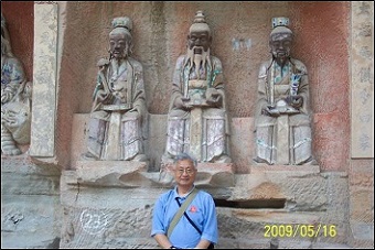 图28. 我在宝顶山“华严三圣”摩崖石刻前面的留影
