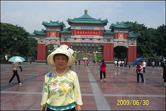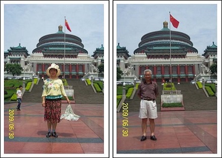 2009年6月30日,我与我妻到重庆市的市中心去游玩,下图是我妻在人民广场上的留影,背景是重庆市人民大礼堂的牌楼。