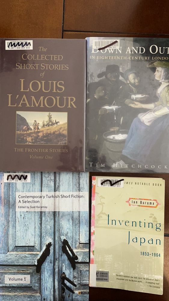 今天在此收书四本,一共才花了6元,在排队等着付款时,我让弟弟猜会要多少钱,他猜10块,我猜7块,因为图书馆的书,hardcover的2元一本,paperback的1元一本,是最最便宜的了。但是付款时告知只要6元,原来有一本书我以为要2元,结果只收了我1元。