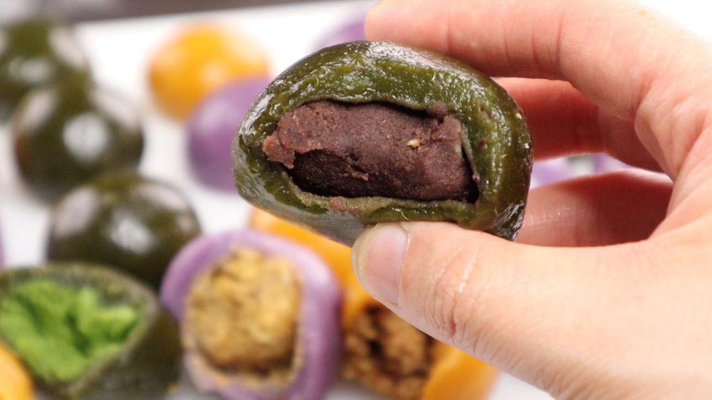 * 强烈推荐 豌蓉青团, 咱也可以叫它双青青团! 清香的豌豆做成的内馅, 加稍许油盐,清淡宜人, 配上Q弹的外皮, 真的非常好吃!