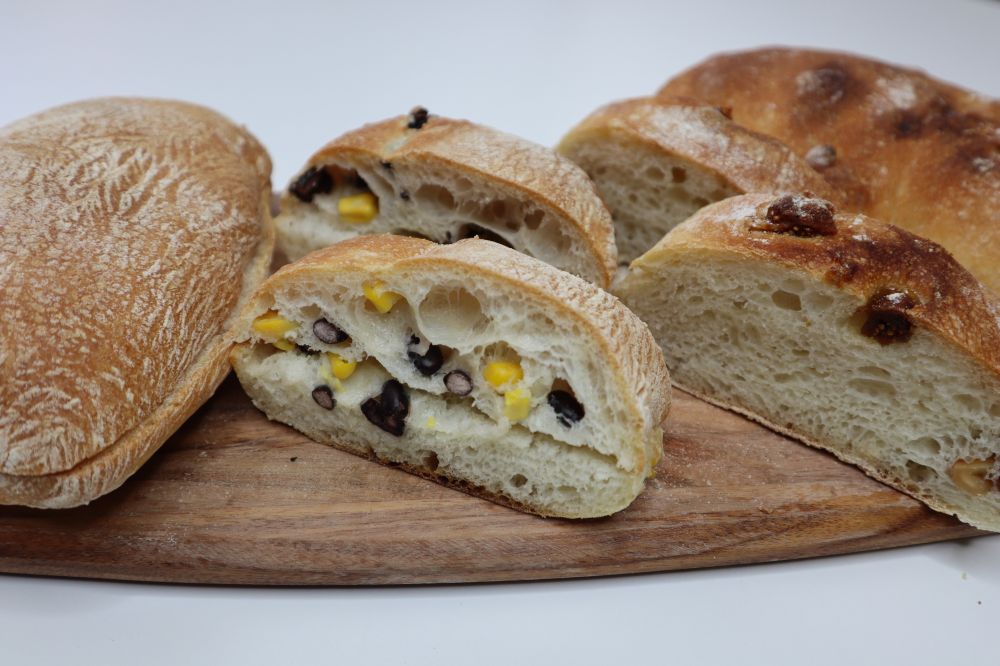 夏巴塔面包, 热量低,作为一款意大利经典面包,口感外壳薄脆, 内心柔软但是非常有韧性, 越嚼越香。 因为材料特别简单, 所以非常健康, 而且可以品尝到麦香味。