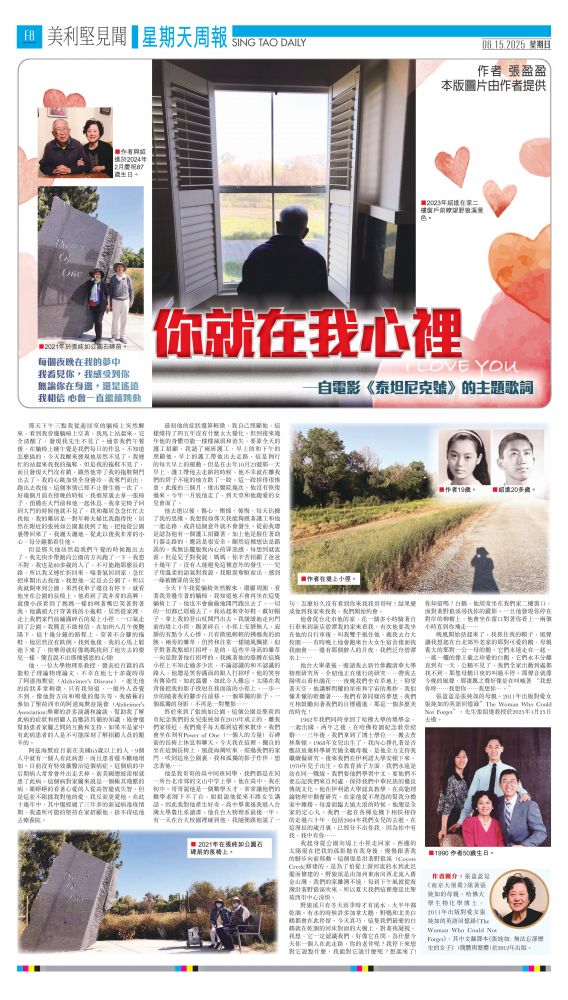 阿茲海默症目前在美國65嵗以上的人,9個人中就有一個人有此病患,而且患者還不斷地增加。目前沒有特效藥醫治這個病症。這個病的中后期病人常常會外出走丟掉。前美國總統雷根就患了此病。這個病對家屬來說是一個極其殘酷的病,眼睜睜的看著心愛的人從高智變成失智。但是這並不阻擋我對他的愛,我反而更愛他。在此十幾年中,其中還經過了三年多的新冠病毒疫情期,我盡所可能的堅持在家招顧他,捨不得送他去療養院。