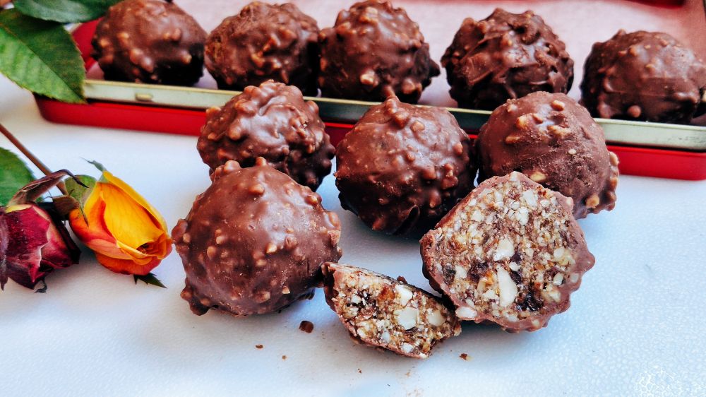 坚果巧克力球:由杏仁等坚果制作的巧克力糖,香醇美味、非常好吃,老少皆宜,也是节日馈亲赠友的好礼品,做法超级简单零失败。