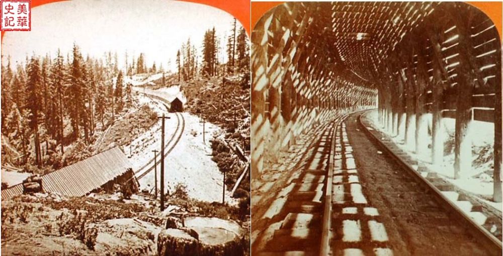铁路工人的宿营地随着铁轨的铺设向前移动。中央太平洋铁路公司给工人提供帐篷,很多华工还是住在工棚和地窝子里。大雪封山的季节,从地面上只能看到他们棚屋的烟囱和通气孔。上班要穿过两边都是雪墙的通道,沿着雪台阶下到工作面,在摇移不定的灯光下干活。 屡屡发生的雪崩埋葬了多少华工到现在也没有确切的数字,只知道有些人的遗体直到第二年春天才发现。在这样极端艰苦和危险的条件下,铁轨依然每天一寸寸地向前延伸。
