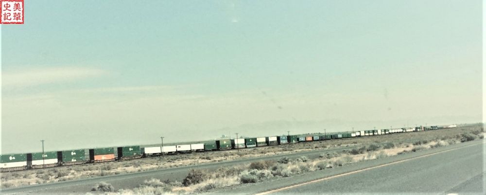图十二,Great Basin中与I-80公路并行的火车。 作者摄于2018年