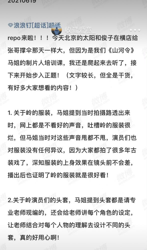 ?转载一位博主发的:2021年6月19日《山河令》制片马韬repo.
