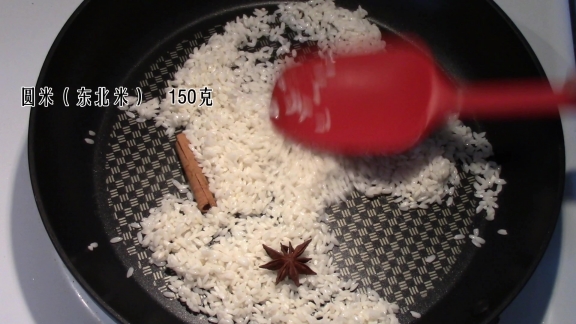 3. 自制蒸肉粉。将150克圆米(东北米)在锅中炒至微黄,再把炒好的米放入料理机中打碎(做蒸肉粉不是一定要用糯米,我觉得有粘性的圆米一样好用)。在打好的米粉中加入50克中等粗细(或是粗的)玉米粉。玉米粉是一种很好的裹料。