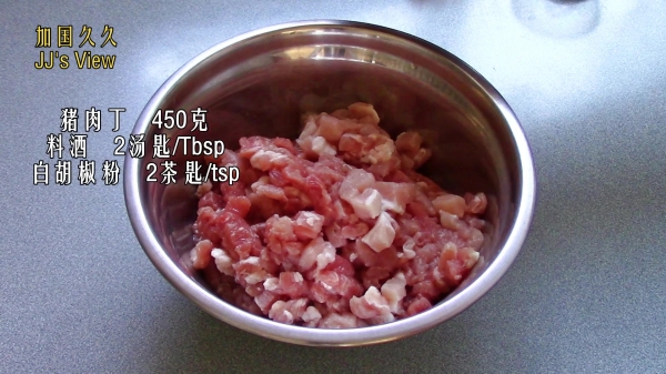 3.准备肉丁馅,腌制2个小时
