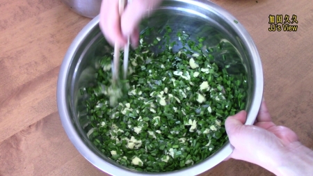 新鲜的韭菜就要用新鲜的吃法,只用油和盐调制的韭菜鸡蛋虾仁三鲜馅。要吃的就是韭菜的原汁原味。