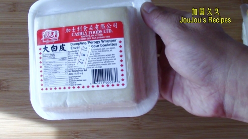配料表/Ingredients Table: 1包大白皮450克重约31张皮/1 pack of Dumpling Wrapper 450 grams and 31 pieces in it; 干香菇/dried shiitake mushrooms 25 grams;鲜虾仁/cleaned shrimp 200 grams;猪肉糜/ground pork 300 grams;鸡蛋/egg 1 piece;厨用酒/cooking wine 1 Tbsp;味极鲜酱油/Maggi sauce 1/2 Tbsp;盐/salt 1 1/2 tsp;白胡椒粉/white pepper powder 1 tsp;小葱/green onion