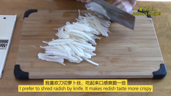 1.擦板擦的萝卜丝口感比较软烂;刀切的萝卜丝口感比较爽脆;