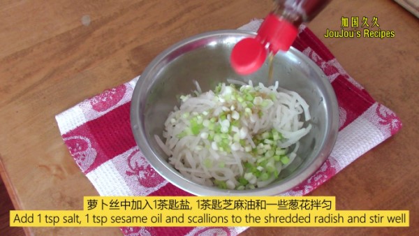 用量:350克的去皮白萝卜和400克中筋面粉加600毫升水可以做出10个每个重约100克的萝卜丝饼