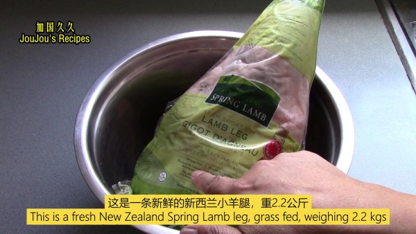 用了一条重2.2公斤的羊腿,做好后得净肉1公斤。