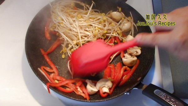 4.炒面时不用锅铲,用筷子炒面不容易粘也不容易断。