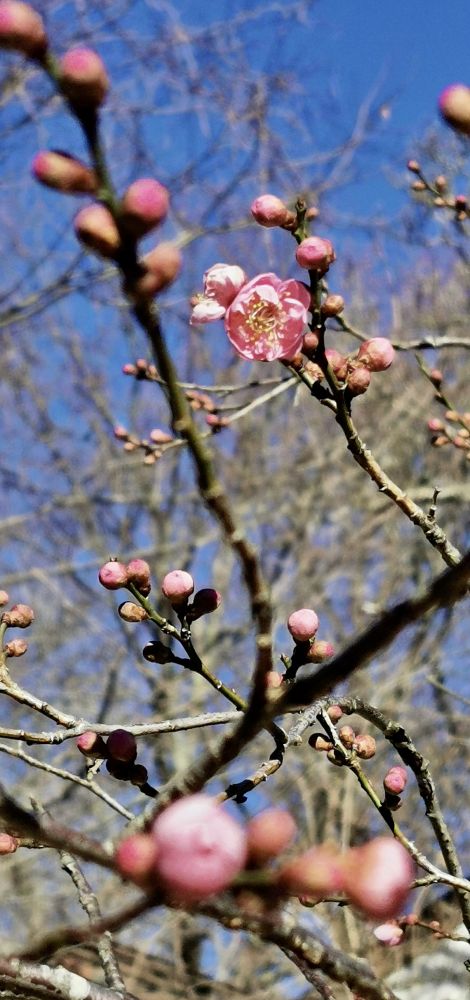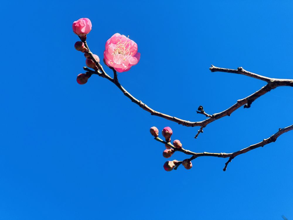 红梅就在距离腊梅十几尺远的地方,花瓣粉红,故有艳名:宫粉红。开花的时候,香气幽淡,似有若无。我对红梅比较青眼相看,这主要是被咏梅作品和歌曲洗了脑子的缘故。梅花寒天绽放,原是它被造时的命定,文人下笔总是别有用心,硬说是不畏苦寒、品格高洁,让它作比兴手法中的主角,打扮、描述、颂赞,搞得人不敢有丝毫亵渎或不敬。
