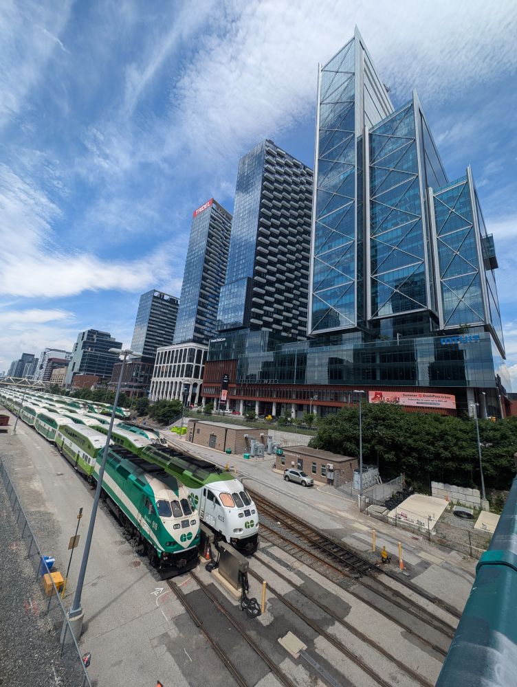 位于多伦多市中心Front / Spadina西北角拔地而起的一组建筑很吸引眼球,南边是Go train铁路,