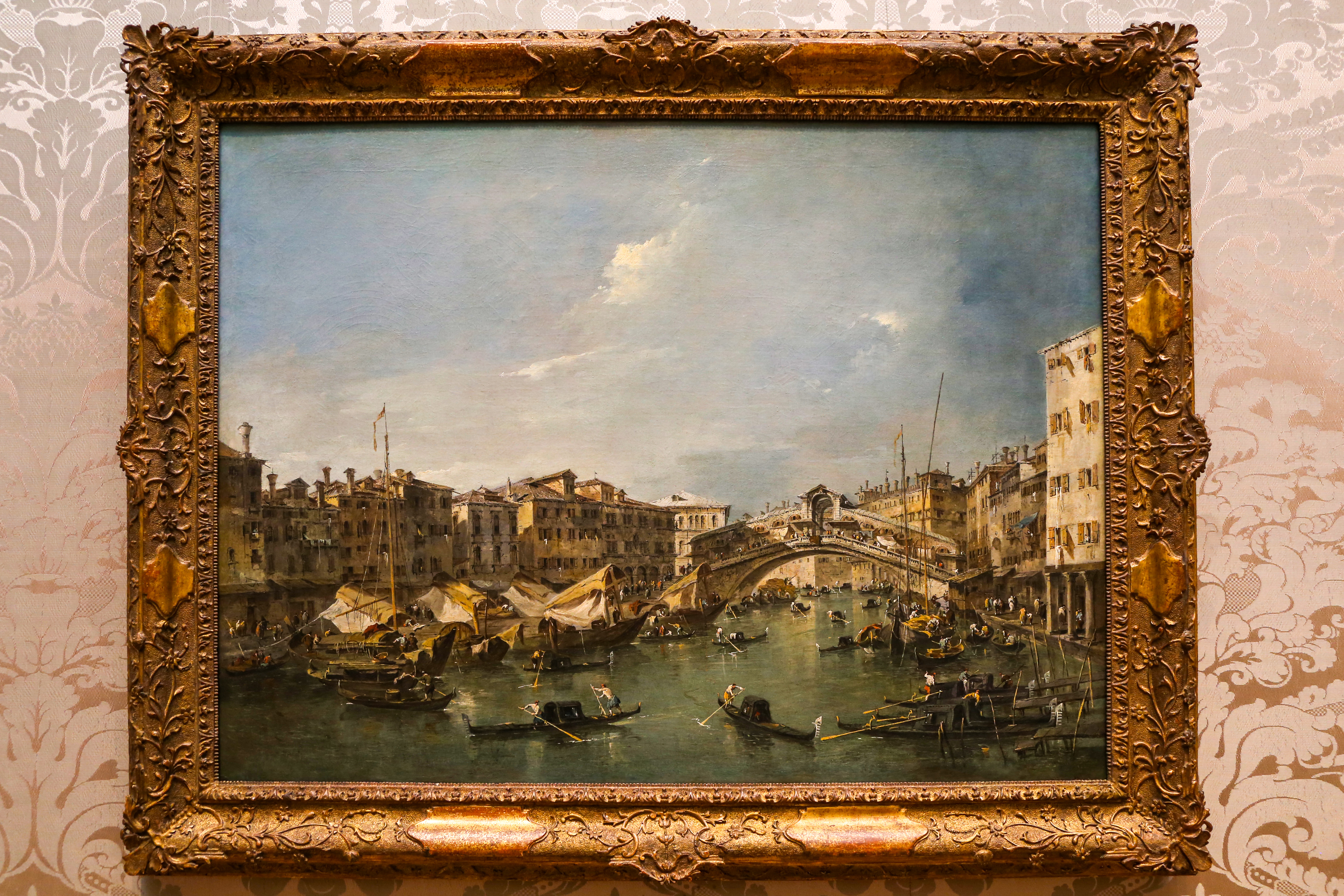 3 Grand Canal with the Rialto Bridge, Venice(威尼斯大运河及里亚托桥), 大概完成于 1780, by Francesco Guardi, Francesco Guardi (1712-1792) 是意大利画家、贵族、古典威尼斯画派的最后一批实践者