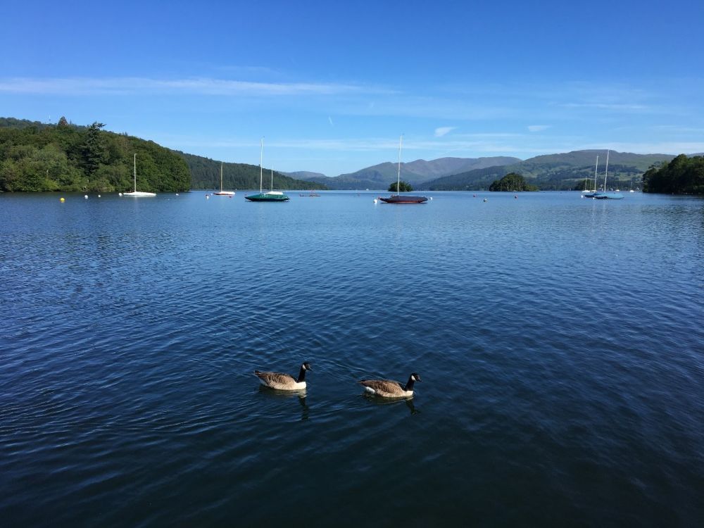 我们坐了三趟游轮巡航温得米尔湖的不同部分,并沿着湖边走了2万余步,湖区的道路,总是可以与湖水山峦相伴;湖畔的步道,总可以通向山幽林深之处;山野坡道上,总有或大或小的湖面映入眼帘。湖区波光粼粼的大小湖泊,又总与重峦叠嶂的山峰和陡峭嶙峋的山谷相伴相随,宛如一曲浪漫的田园交响曲。细细品味两湖还真有些不同,杭州西湖精致妩媚,娇柔秀丽;而英国湖区自然开阔,充满野趣。然而仁者乐山,智者乐水,寄情山水,则是世界相通的审美情趣。