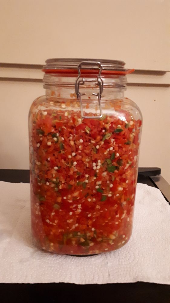 剁椒做了两瓶,一瓶只加了蒜和姜,一瓶增加了柠檬汁。