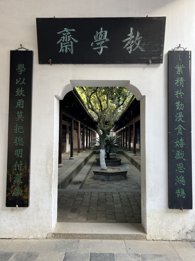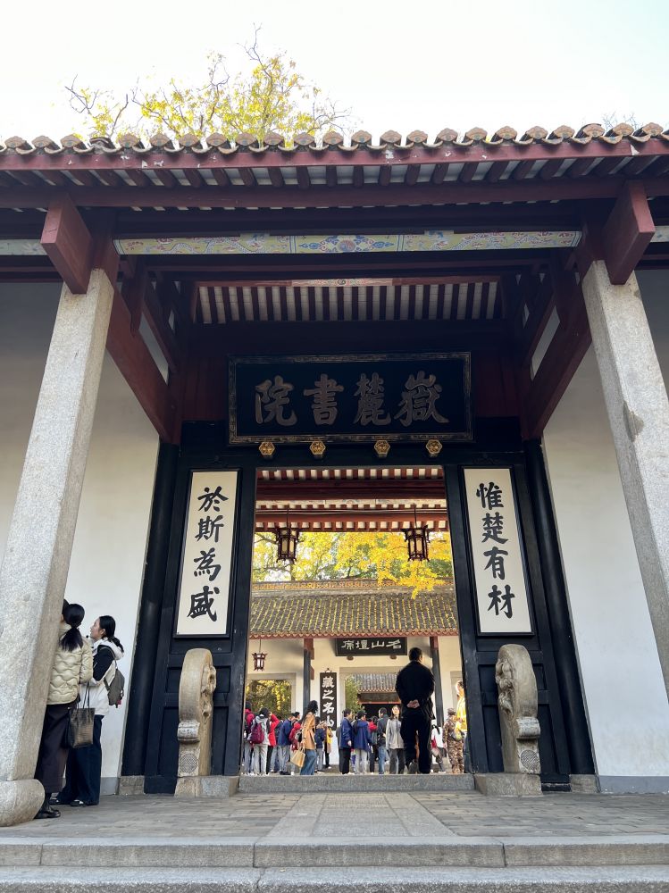 人太多也是影响观感的一大原因。没有真正的千年古建筑压场,岳麓书院静穆的书院气氛很难不被乌压压的人群压制。好不容易拍着一张没人挡在门口的大门,大门两侧,便是那副名烁古今的对联:‘惟楚有材,于斯为盛’。这是一副集句联,上联源自《左传》,下联出自《论语》
