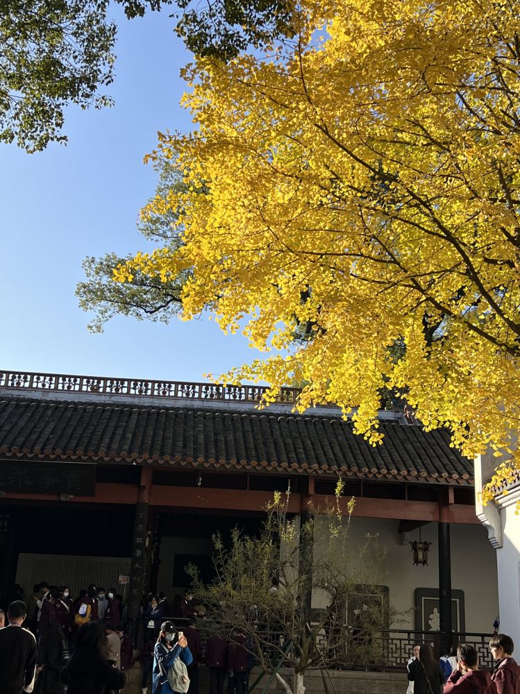 已经几十年没去过岳麓山了,没想到既不是假期也不是周末的日子,人仍然那么多。首先是车开到那里的时候,入口里面的停车场不让进,外面街道又很难找到停车位,只好到远一点的地方停下,再打车过去。朋友觉得人应该不多,不用头一天预约,结果到那里仍然是要扫码、登记身份信息才能进的。