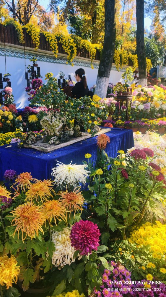 和几个老同学边聊边往山上走,见有几棵红枫。总的来说树木都有一点干和灰蒙蒙的感觉,原来今年湖南特别干旱,雨量很小。回家也听家里人说,现在连梅雨季节都没有明显的潮湿感了。山上还有一个菊花展,挺好看的,就是花儿开始谢了。下面几张有文字标记的照片是同学用他的高级镜头拍的,如果没有就是我的苹果手机随机拍。