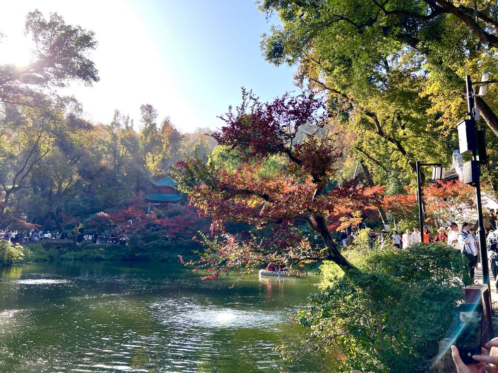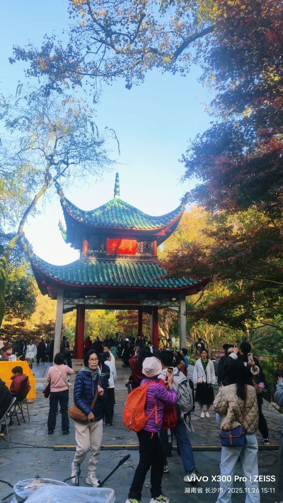 最想去的是爱晚亭,‘停车坐爱枫林晚,霜叶红于二月红’,这大概是这个时候人还那么多的原因吧,我们去的那天天气又特别好。