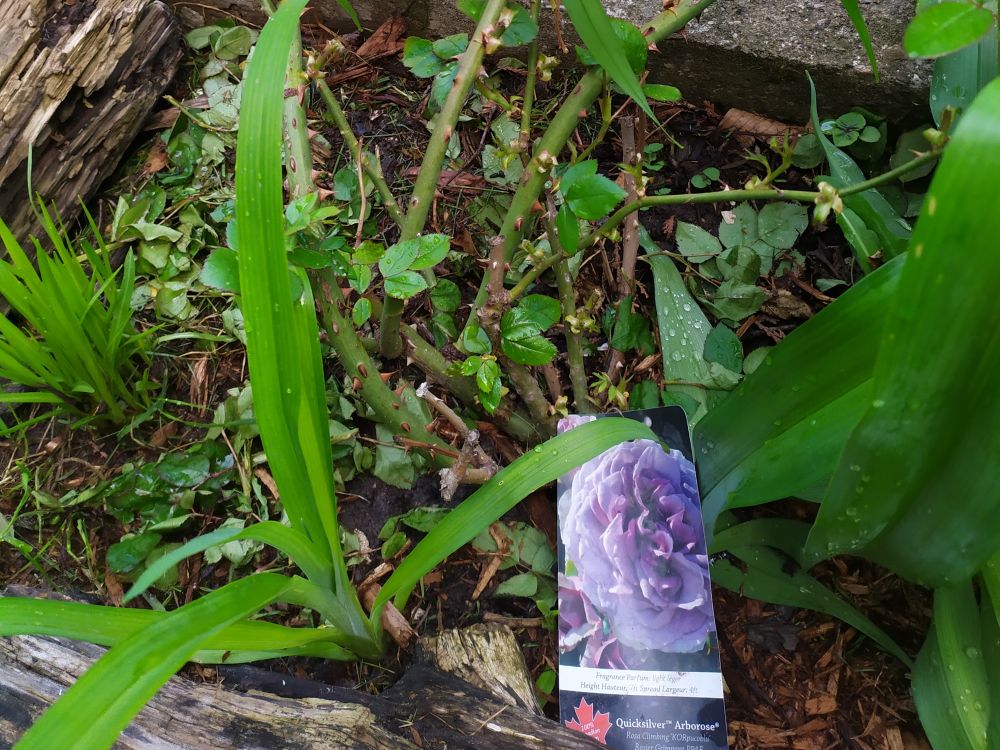 去年开始,受到第一棵玫瑰的成功种植影响,在网上看到一棵紫色的玫瑰,一咬牙又买了下来。直到买回家,我才反应过来,这是一棵从来没有接触过的爬墙玫瑰。这也没有多大的问题,但是自己乱拍脑袋,乱做决定的毛病犯了。把这爬墙玫瑰种在了小院子的树荫下。一个星期内看着这棵Quick Silver爬墙玫瑰的叶子一日日蔫下去,心慌不已的立马把它转移阵地,和第一棵黄玫瑰并排种在一起。然后到Home Depot又买了给玫瑰的plant food. 每周一次的供养着,终于在入冬前把花给养壮实了,现在已经一米多高了,希望今年能开出更多 的紫色花朵。