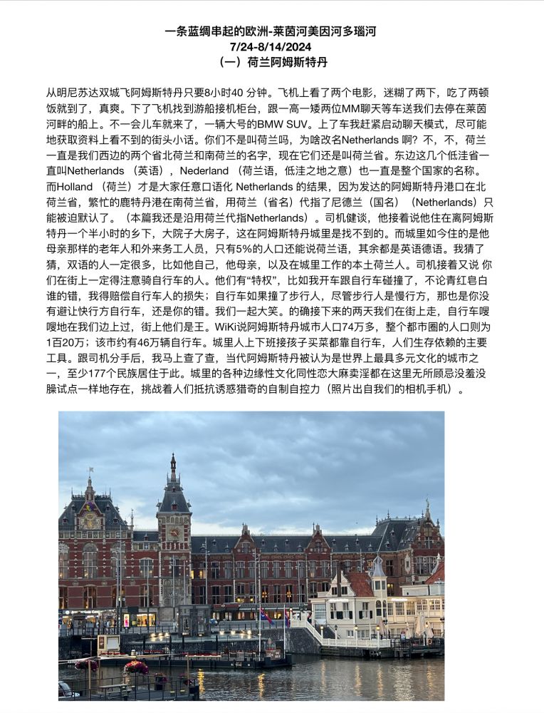 一条蓝绸串起的欧洲-莱茵河美因河多瑙河 (一)荷兰阿姆斯特丹