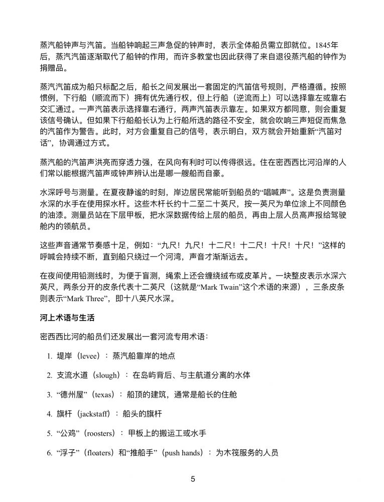 密西西比河笔记 第十二章 蒸汽船上的生活