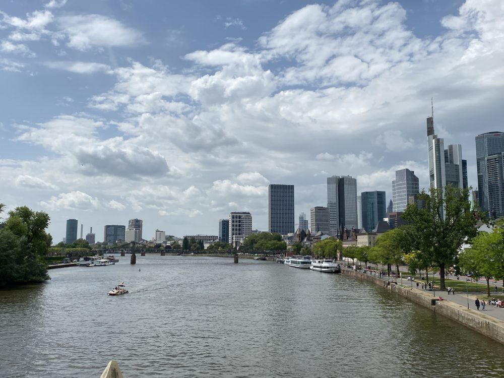 法兰克福虽不大,却是德国的金融中心。周末的市中心行人不多,大多是游客。那天天气晴朗,阳光明媚。我们按计划在市中心逛了几个街区,随后来到了缅因河畔。
