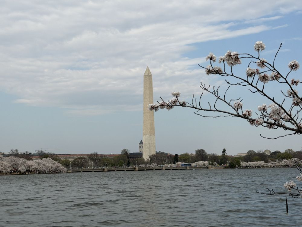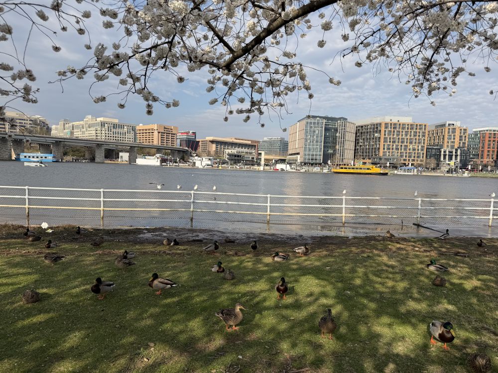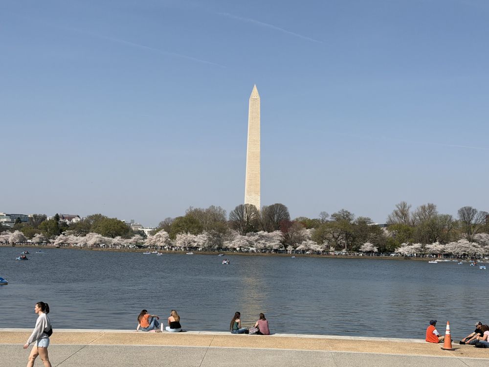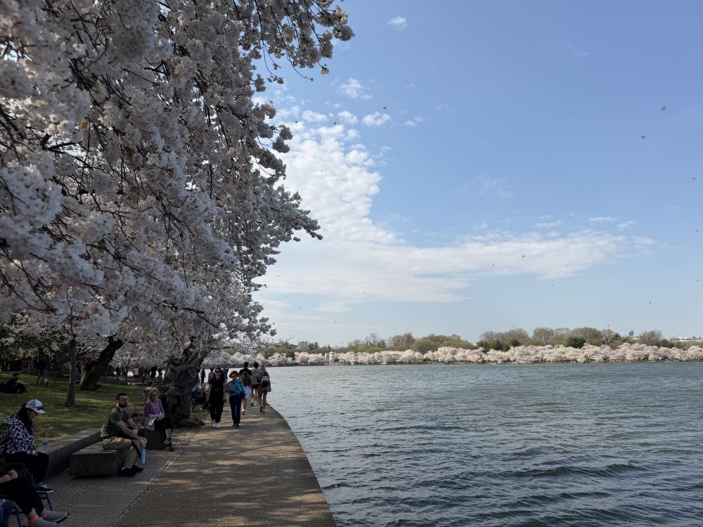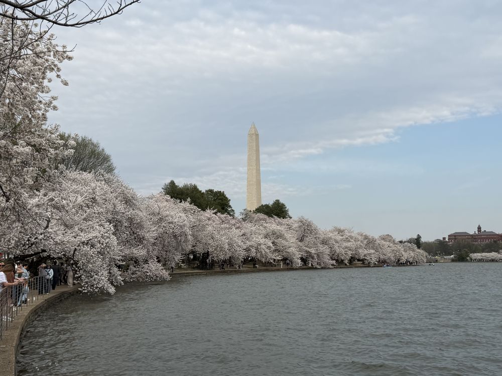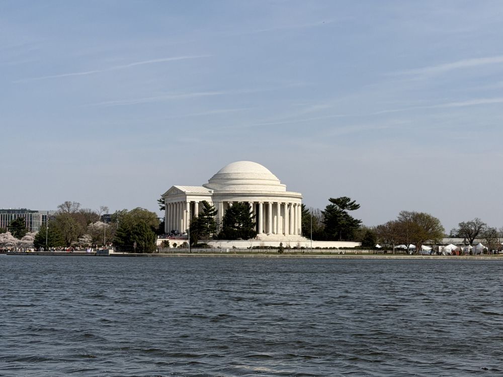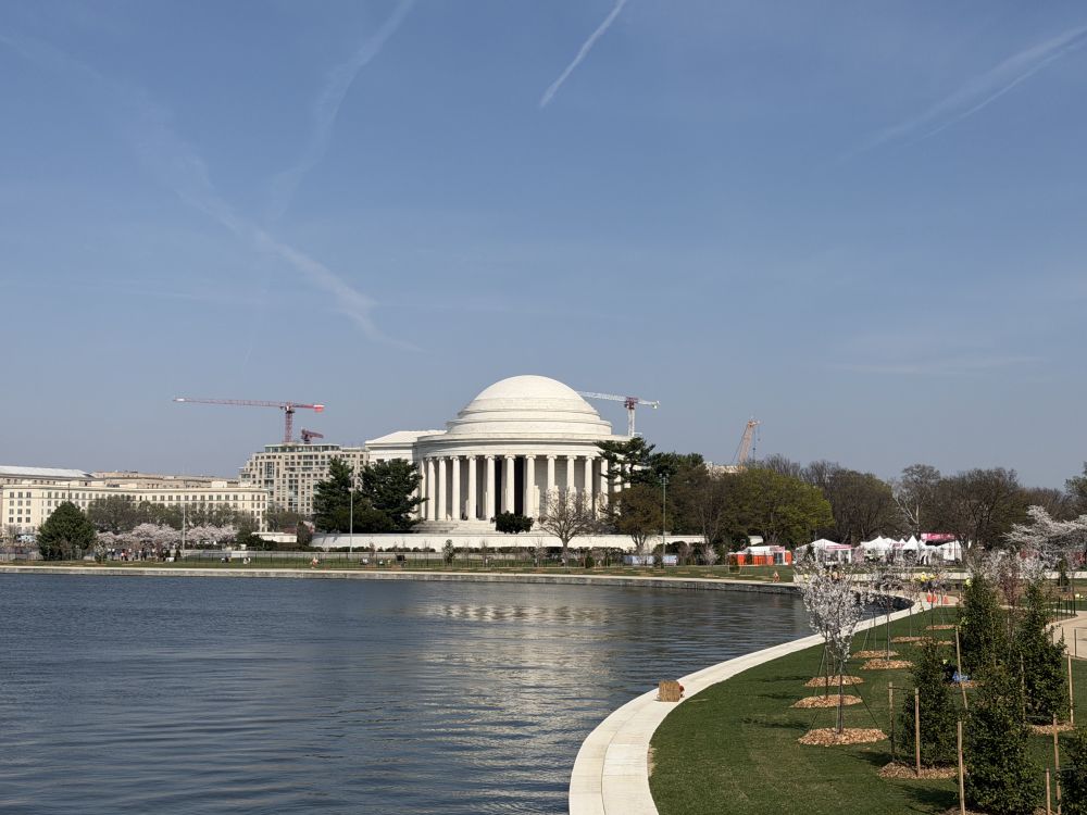 两年前,杰斐逊纪念堂湖畔曾遭遇水淹,许多沿湖的人行道受到损坏。如今仍在修复之中,一些路段被围起施工。不过,大部分区域已经修缮得相当不错,还新种了不少樱花树。如今湖边的步道比以前更加整洁、舒适了。