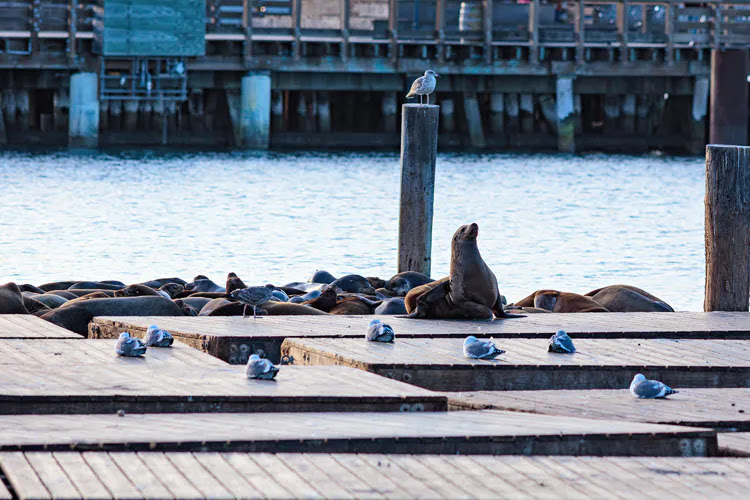 还有浮筏上栖息的海狮、街头艺人表演,热闹中充满悠闲的海滨气息。