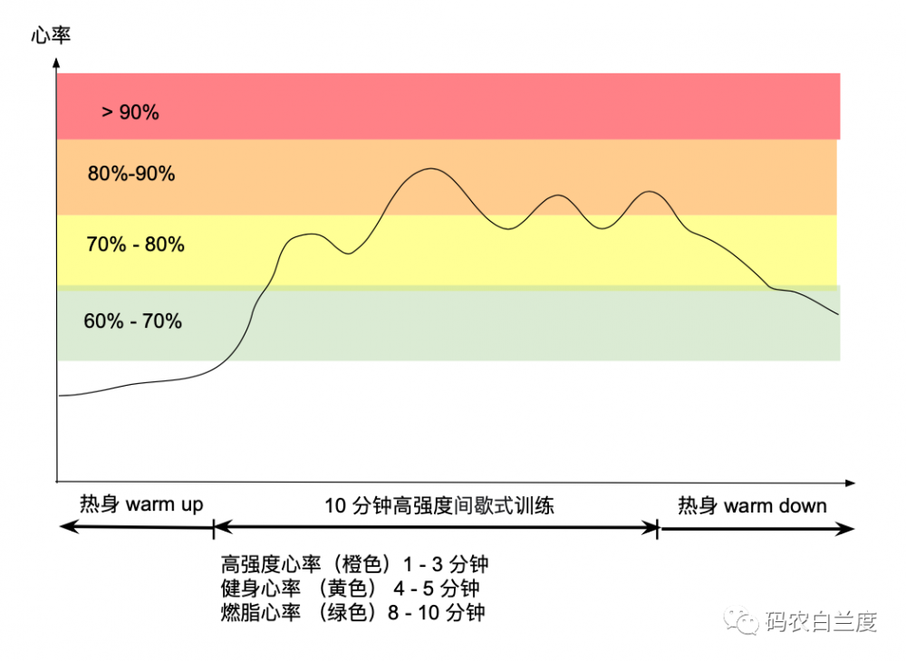 上文讲码农白兰度不想中年油腻却又想偷懒,于是每天十分钟,每周五天做高强度间歇式训练,让心跳达到一个目标范围。坚持几个月后效果显著,身体有型,腰背也不再酸疼。
