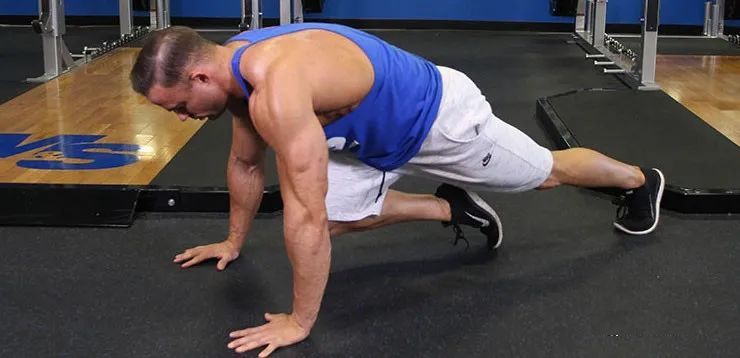 动作3: 俯卧撑加收腿。做一个正常的俯卧撑,然后收一条腿向胸前。腿放回,做下一个俯卧撑,收另一条腿。30秒钟做16次左右。