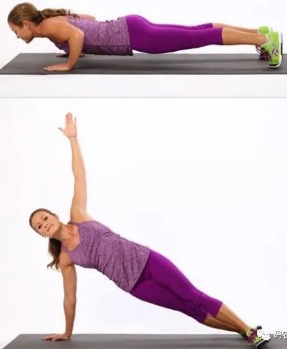 动作8: 保持平板支撑姿势,双臂由伸直转为单臂肘部支撑,转为双臂肘部支撑,转为另一侧单臂肘部支撑,然后恢复双臂伸直。30秒做10-12个循环。