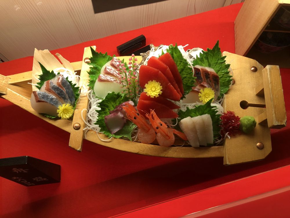 再看这盘刺身,鲜美无比,可惜不是真的。