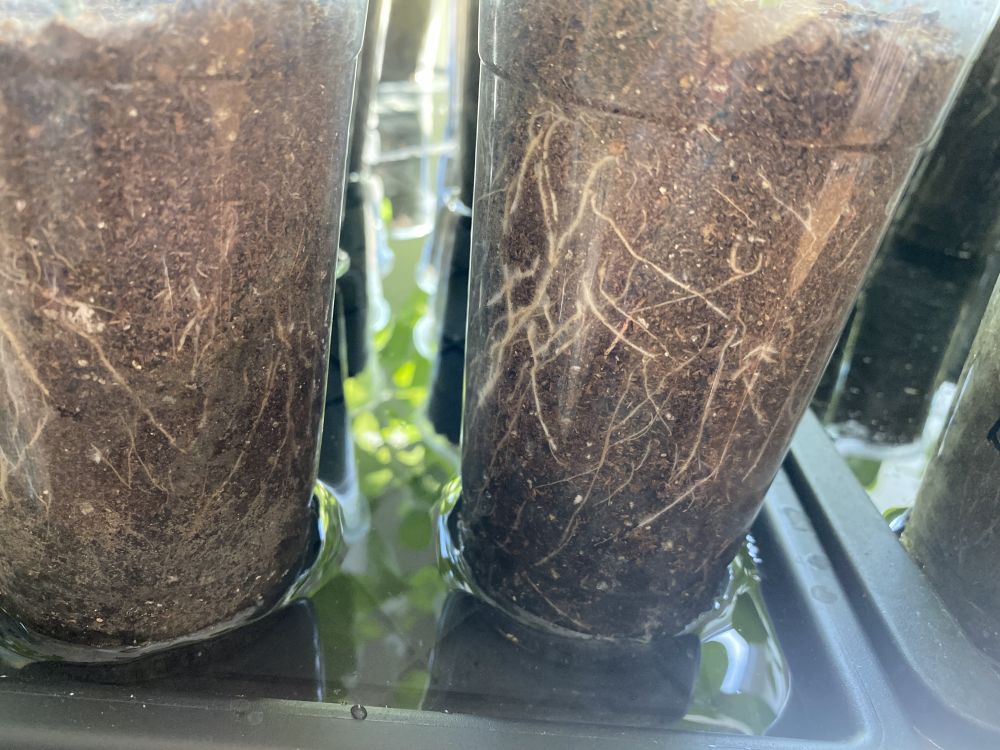 - 以后浇水,不能从上面往下浇。每次浇水,把水倒进托盘内,让水从底部浸入育苗杯。这样的好处是小苗为了吸到水分,根须必须尽力往下长才能得到水分,这样帮助植物长根。这就是为什么我前面讲到托盘需要高一些,方便加水。