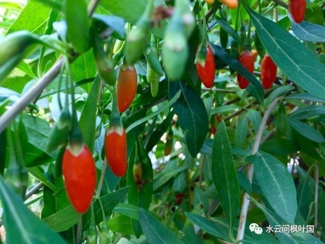 八月开始,枸杞红了。开始时万绿丛中一点红,偶尔进入眼帘令人欣喜。几天后每天清晨可以摘上一把,个个红润饱满。等不及清洗就一颗颗塞进嘴里,感觉舌尖上的清甜微苦。接下来的日子,枝条上挂着的一串串晶莹剔透的红果子让人感受到了丰收的喜悦。