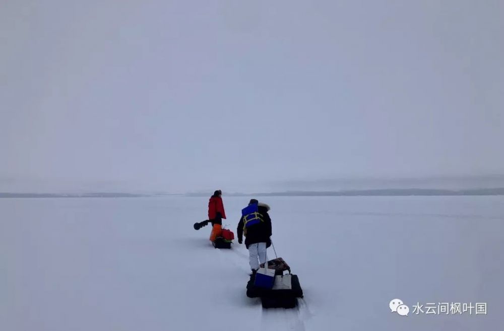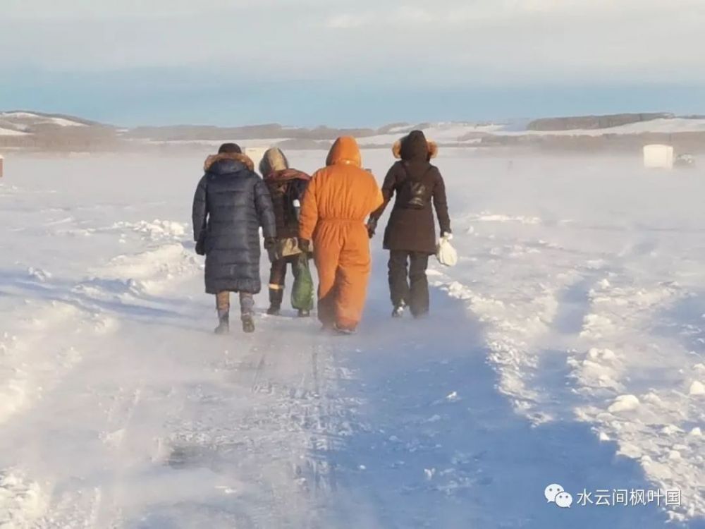 湖上冰厚4寸的时候,人就可以徒步上冰了。拉着装有工具的雪橇,放眼茫茫雪原,你会深深感受到大自然的伟大包容与人类的渺小。
