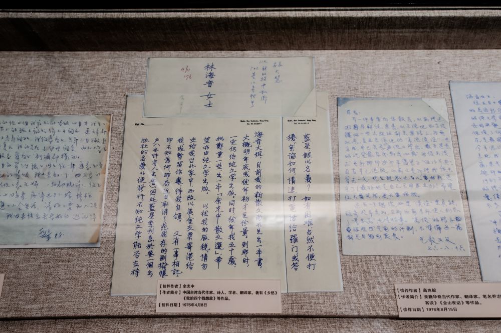 室内的展览空间不是很大,但胜在内容较详实。展览通过文字、老照片、电影剧照、手写信、手稿、出版物等串联起林海音长期生活过的两个地方——北京和台北。看介绍才知道,原来林海音早年喜欢凌叔华的书,是凌叔华的粉丝,在写作风格上也深受其影响,笔法上颇有凌叔华的清淡秀逸之气。俩人都擅长描写女性人物,尤长于心理写实,但林海音的文风不似凌叔华那般温顺,她对人物心理精致入微的刻画及文笔力度更为强烈。我刚刚去过凌叔华故居,何等巧合。