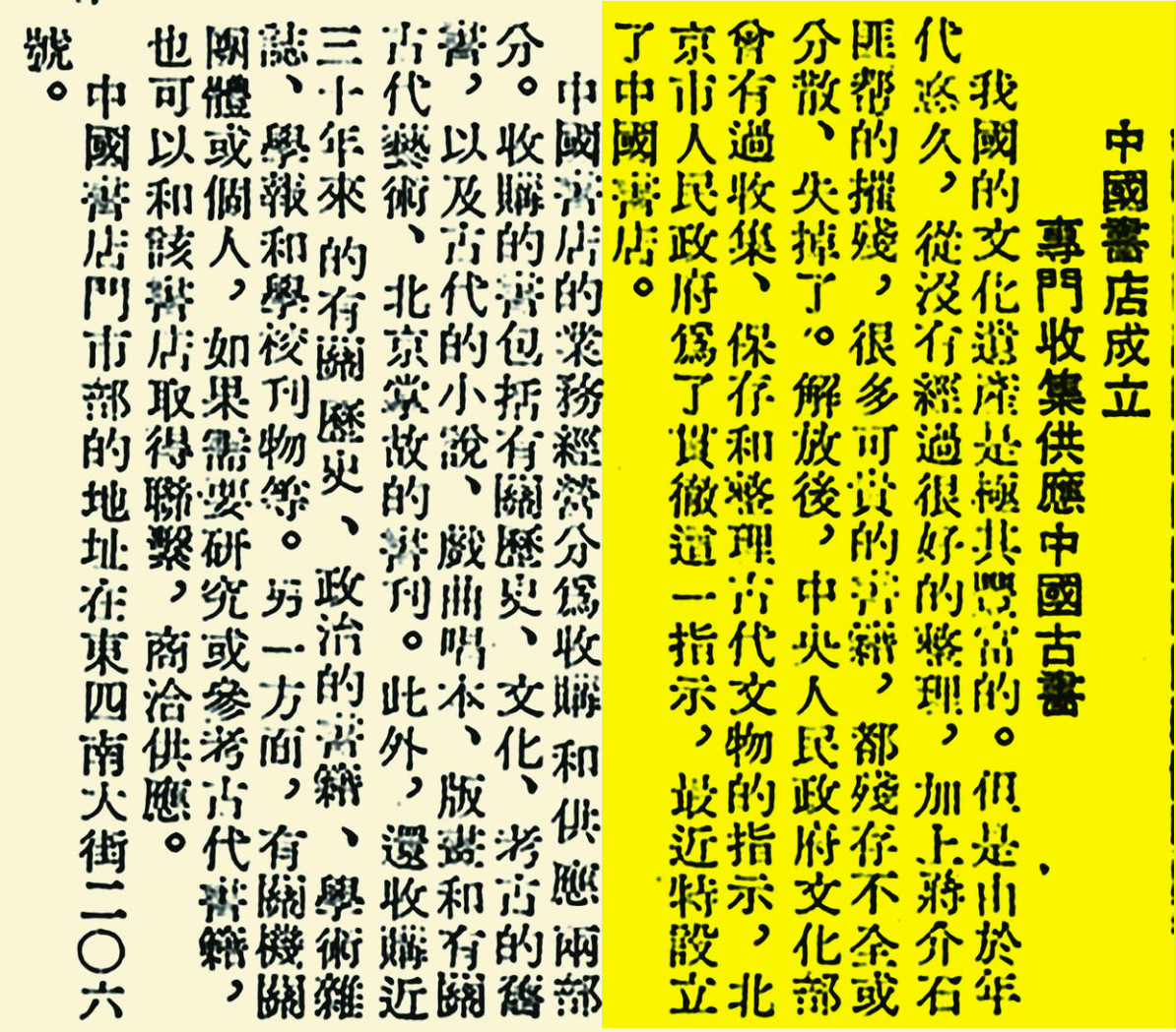 新中国成立之时,全国的古旧书业处于萧条阶段。经郑振铎、齐燕铭等知名人士倡议,1953年1月5日,一家由北京100多家旧书摊、书店合并而成的古旧书店,即中国书店宣告成立。这是中国第一家国有的古旧书店,也是目前全国最大的古旧书实体店。