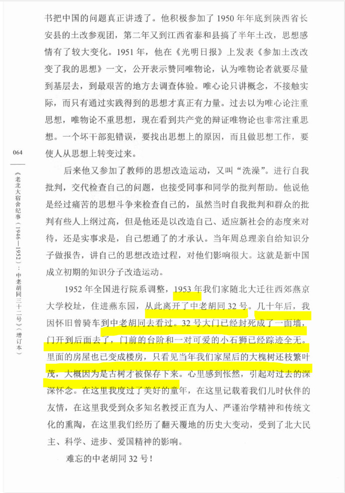 1952年中老胡同32号院成为北京政法大学宿舍,原来大院的居住痕迹已荡然无存,唯有那棵老槐树还默然伫立在那儿。