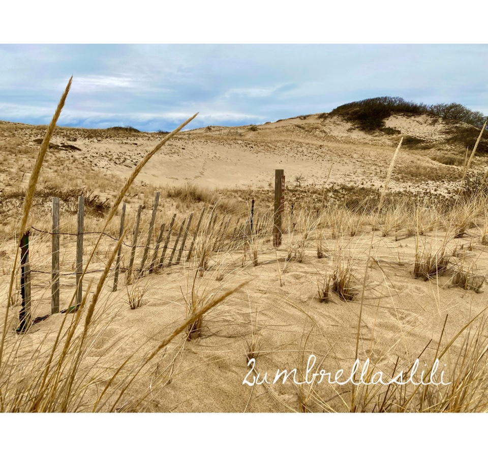 看着俩娃的影子在前面越来越小,我只能叹口气,跑下沙丘,低下头继续往前走。走几步,抬起头环顾四周,这景色可真奇特啊,明明是去看大海,可感觉却是走在沙漠里。就这样走了将近四十分钟,不记得翻过了几座沙丘,如果不是想着沙丘另一面是大海,我真的就放弃了,因为走到最后,真的是很累,每向前迈一步,后面踩着松散的沙的脚就向后推半步。明明是零下的大冬天,我却走出了一身汗。